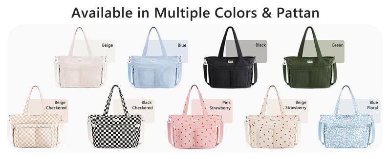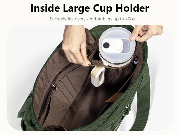Bagstellar Corduroy Tote Bag for Women, 15.6 Inch Laptop Work Tote Bags for School College with Large Cup Holder, Durable Zipper Corduroy Casual Tote Purse Shoulder Handbags for Women Work, Daily, Travel, Gym